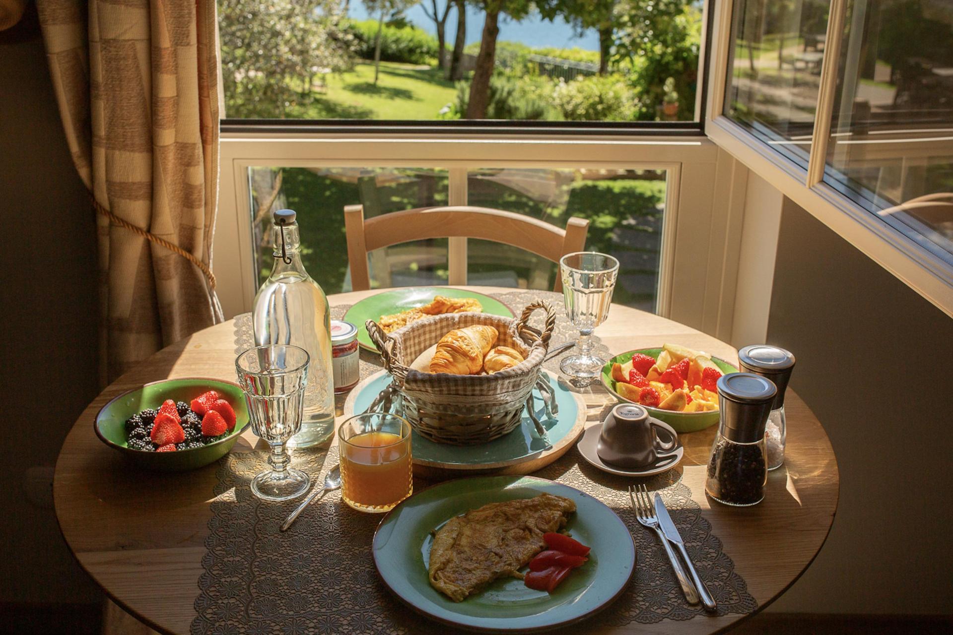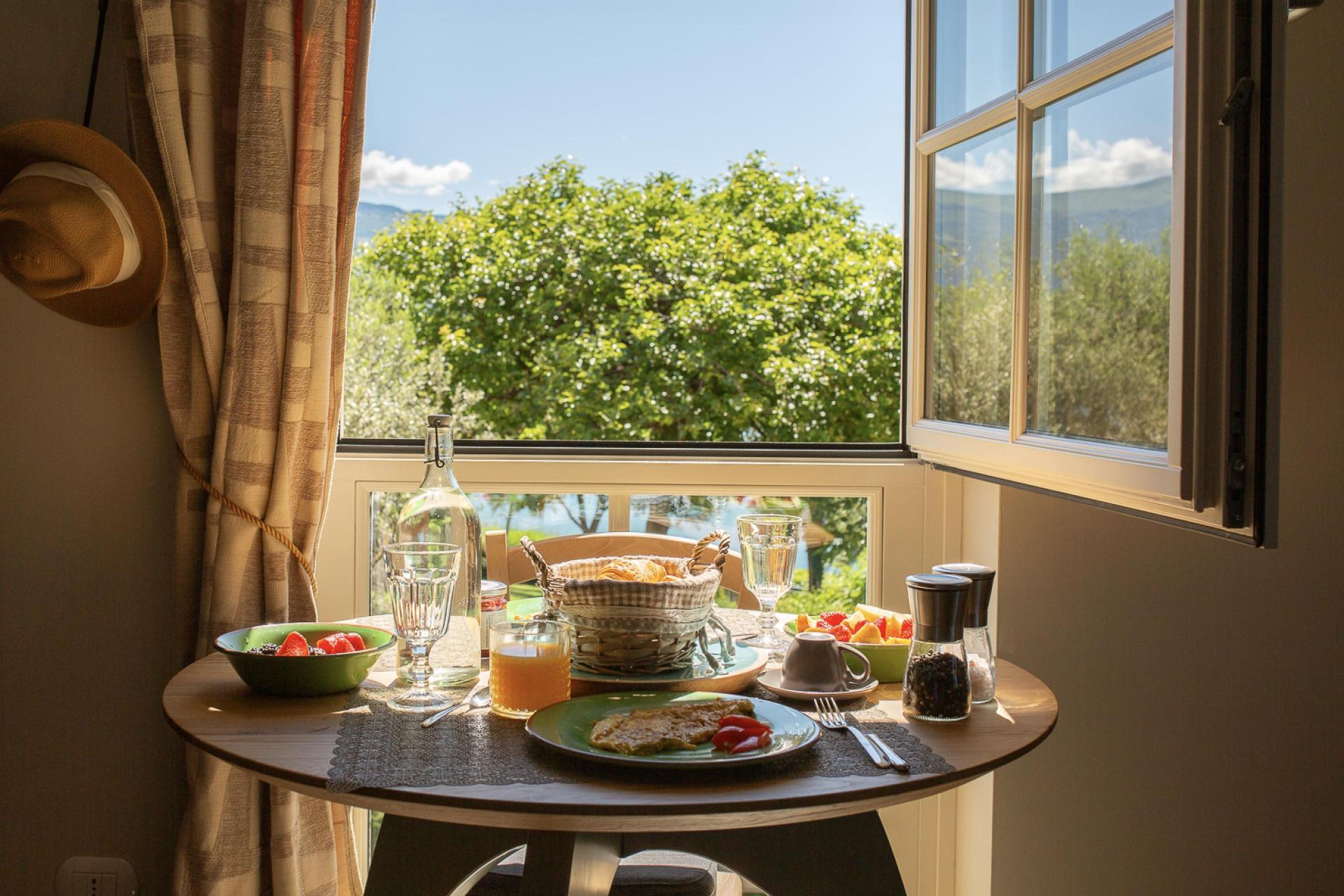 The garden of the villa is beautifully landscaped with old olive trees and there is a small pool. On the edge of the garden there is a sun deck with sun beds, where you can enjoy the lovely view of Lake Garda in peace and quiet. The agriturismo furthermore has a fresh bread service. When you order the buns that you want in the evening, they will be there for you in the morning, in a cute wine basket. Upon your arrival, a jar of home-made jam, a bottle of milk, and butter are waiting for you in the fridge.