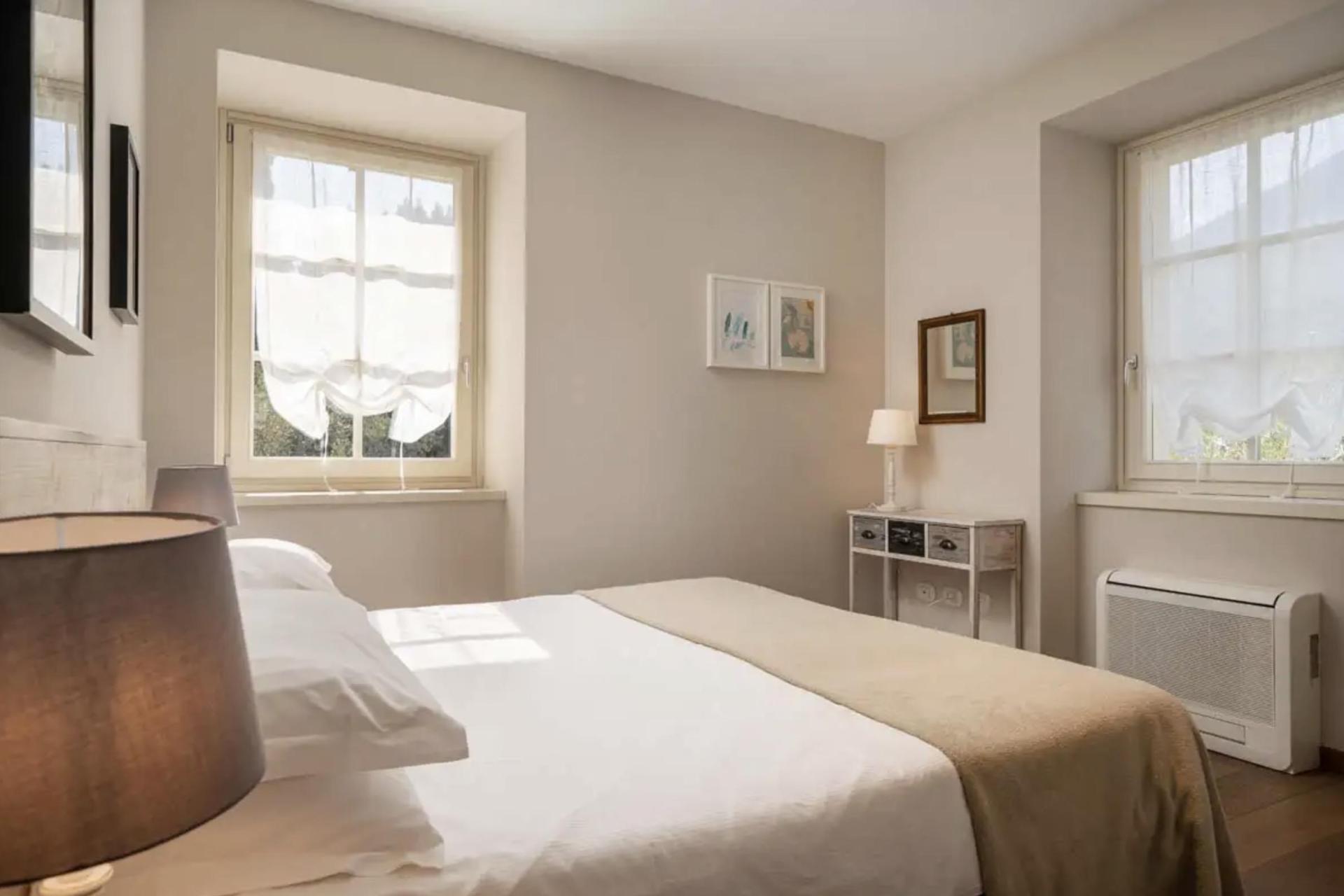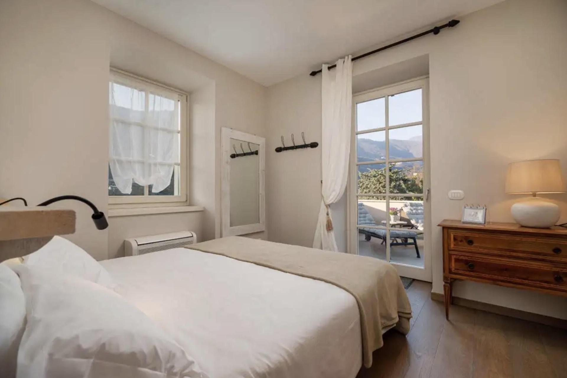 The agriturismo was built in a small church, an old rectory and a stately old mansion. The proprietors have recently completely renovated these three buildings, and fitted them with all modern conveniences and given them a very attractive interior. One mile further up the mountain, they also have a charming independent house consisting of two apartments with a heated swimming pool and spectacular views of the lake. This accommodation is listed as number 142 on our map.